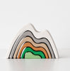 Made without lacquer, these handmade wooden stackers have a velvety touch with natural knots. See our full Raduga Grez selection here.